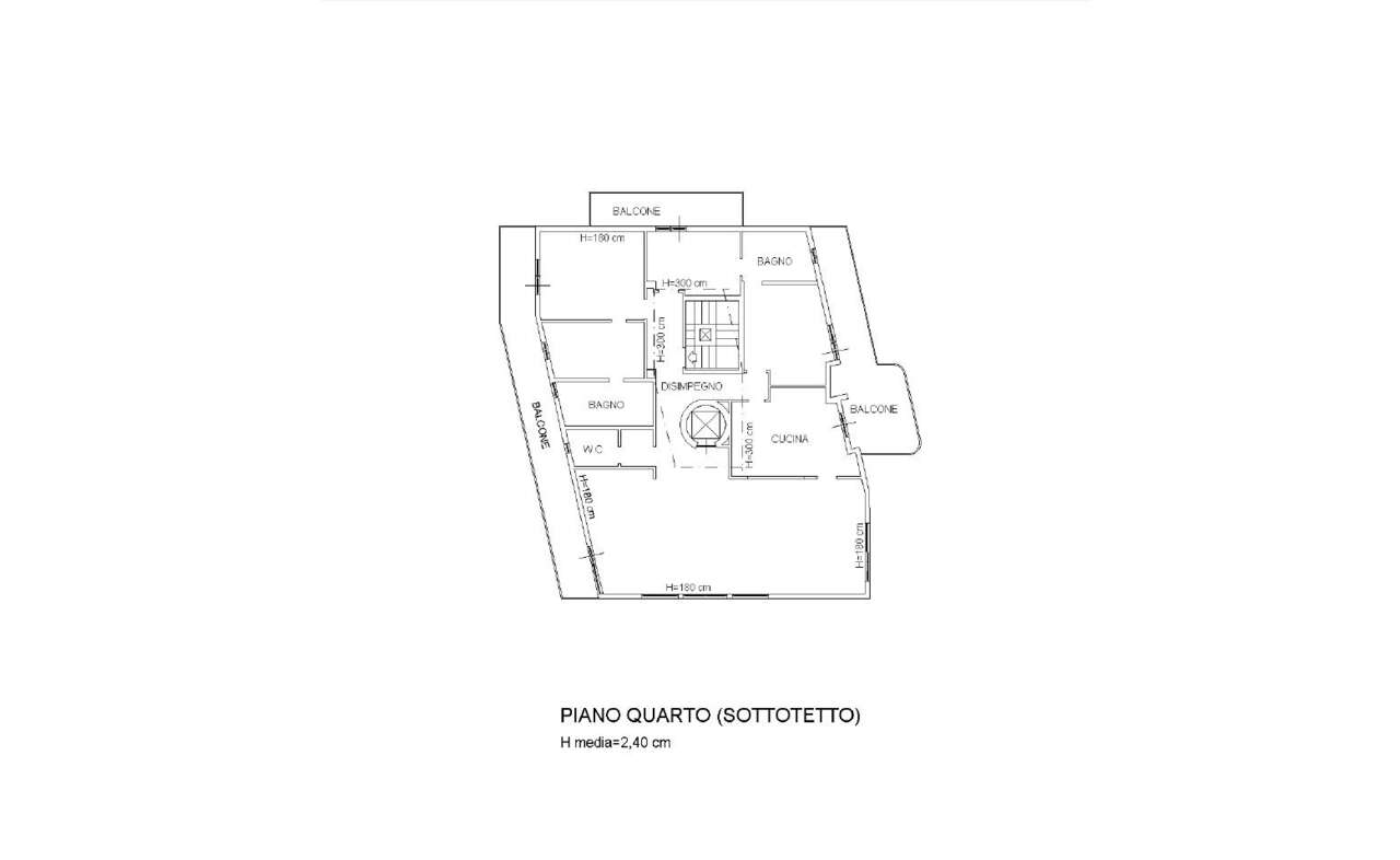 La quarta unità, di circa 170 mq, posta al quarto piano, si apre su un ingresso che conduce a un ampio salone, bagno ospiti e cucina abitabile. La zona notte comprende una camera padronale con cabina armadio e bagno en suite, due ulteriori camere e un bagno a servizio del piano. Anche questa soluzione è arricchita dalla presenza di tre balconi per un totale di 51 mq, che valorizzano l'affaccio e la vivibilità degli ambienti.(Cod. 12334)