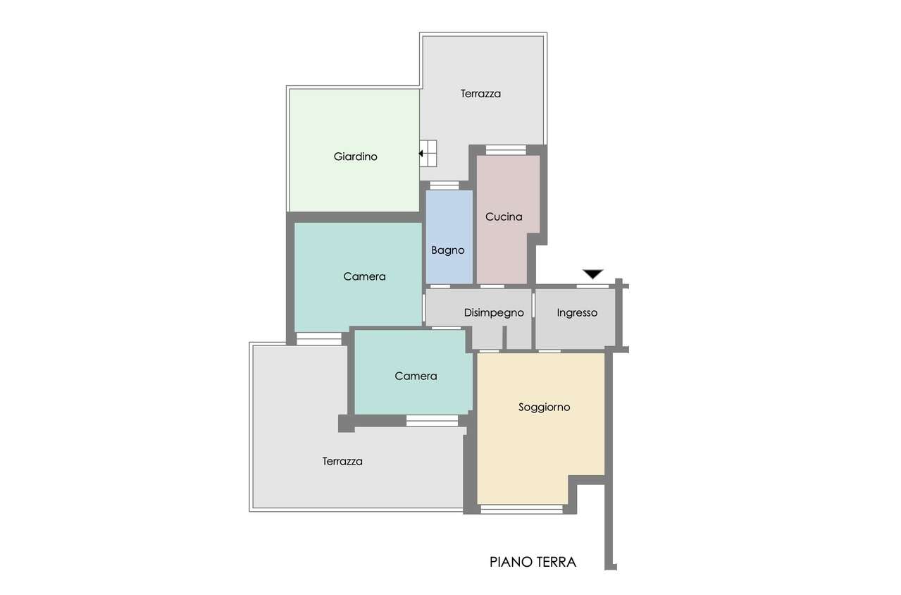 L'immobile, di circa 100 mq, è impreziosito da due ampie terrazze e da un giardino privato per un totale di circa 80 mq, elementi di assoluta rarità che garantiscono luminosità, vivibilità e un'eccellente qualità degli spazi esterni.